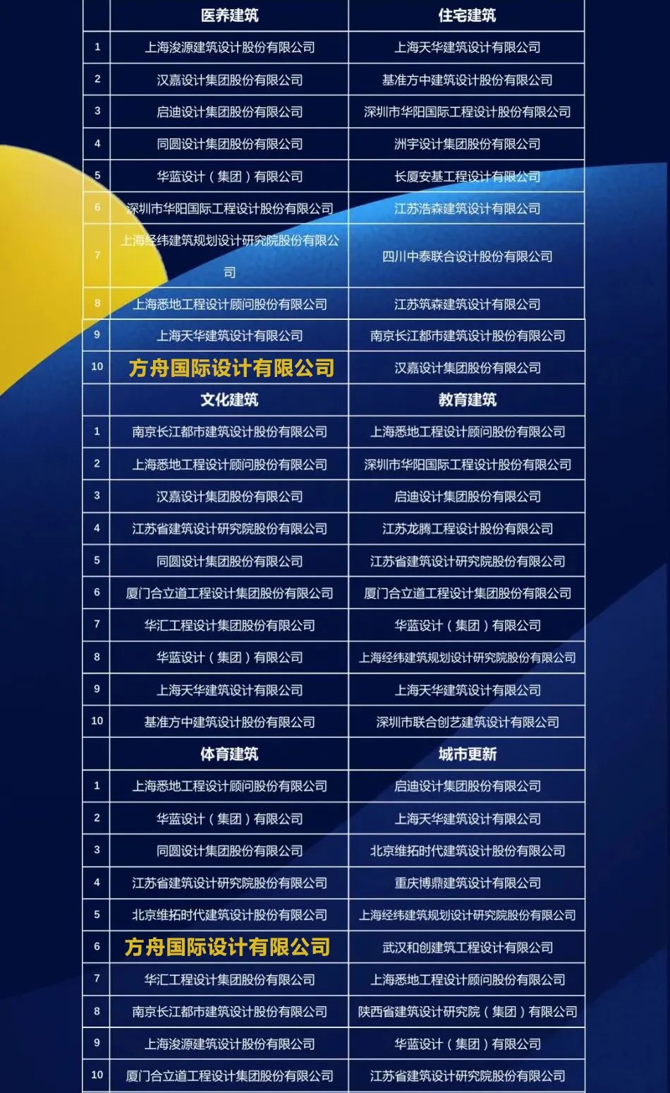 方舟 · 喜讯 | 方舟国际连续八年荣登全国民营设计企业专业十强榜单